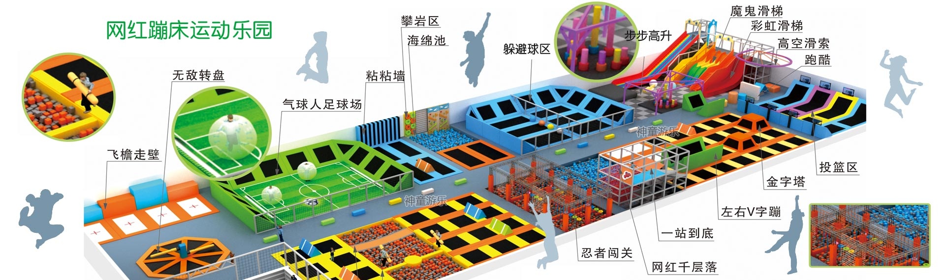 神童提供整場規(guī)劃設計(裝修設計、平面規(guī)劃與VI設計、3D整場效果設計等)與兒童游樂設備、兒童蹦床、充氣城堡、大擺錘等設備生產供應,后期場地運營指導,加上完善的售后服務,專注于提高游樂場的持續(xù)盈利能力!